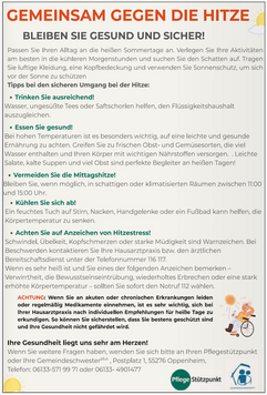 Der Pflegestützpunkt Oppenheim und die Gemeindeschwester+ der VG Rhein-Selze geben Tipps und bieten einen Workshop an, um die Hitze sicher und gesund zu überstehen.
